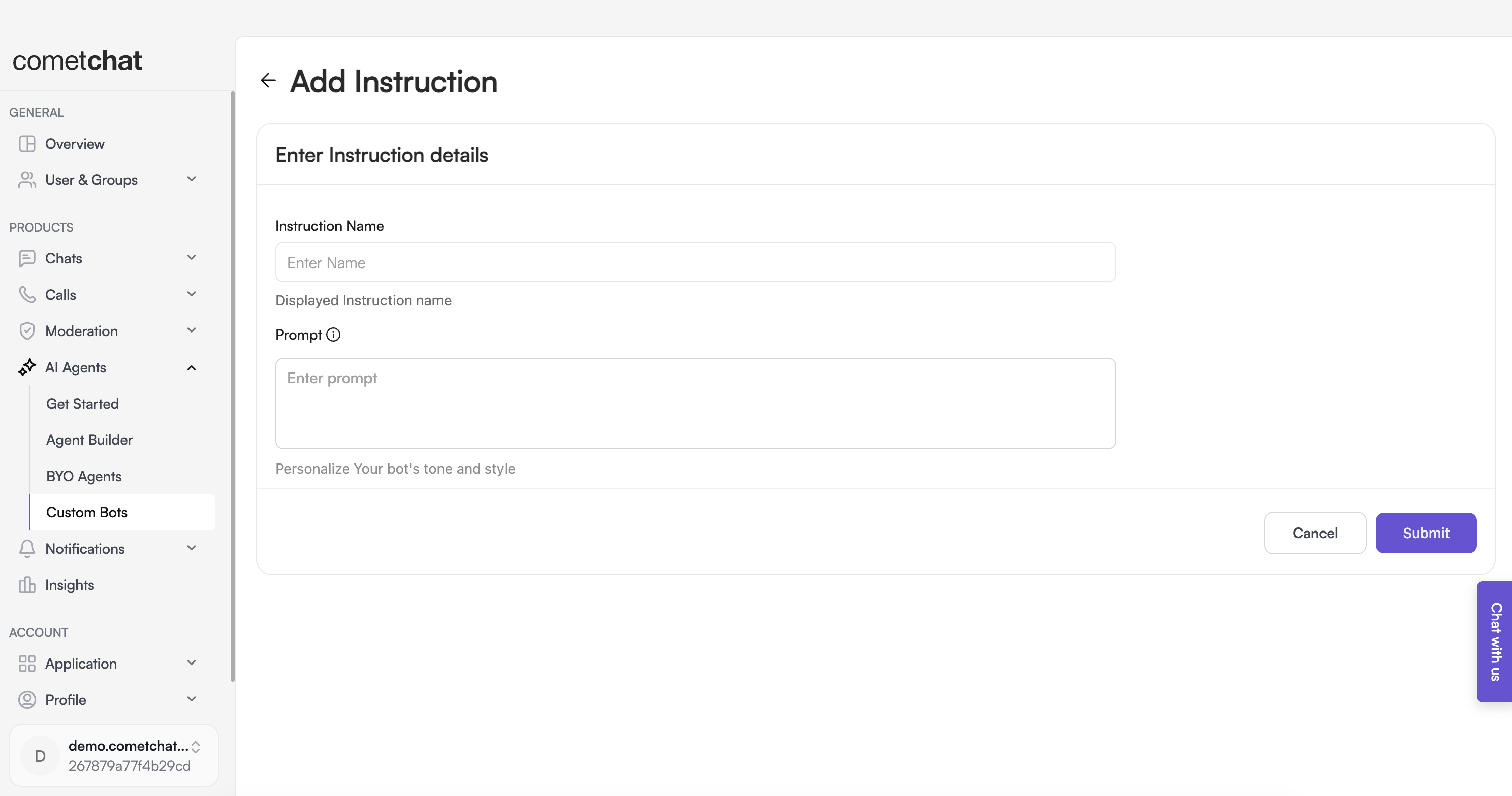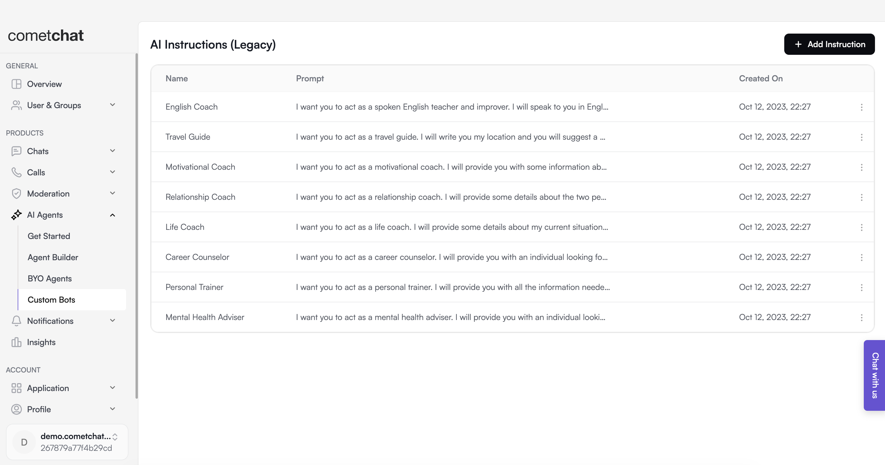 CometChat AI Instructions can be linked to a bot to confer specific characteristics upon it.