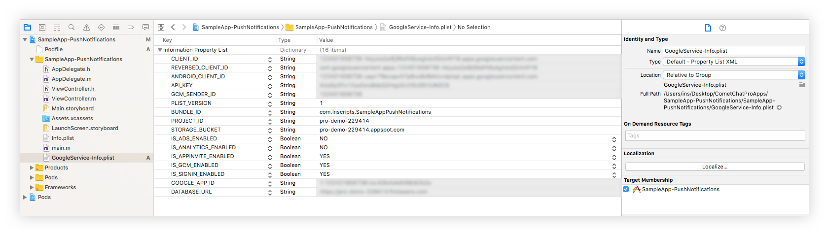 - Enter the relevant details like your bundle ID and download the GoogleService-Info.plist file.