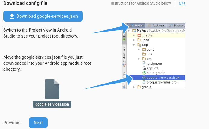 - Follow the on-screen instructions and finally download the google-services.json file.