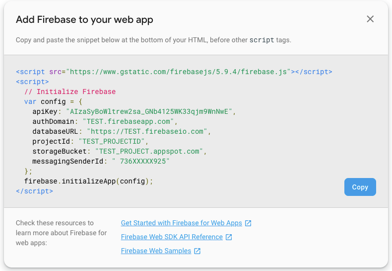 - Here, you will need the Firebase Configuration object that you copied from the Firebase Console.